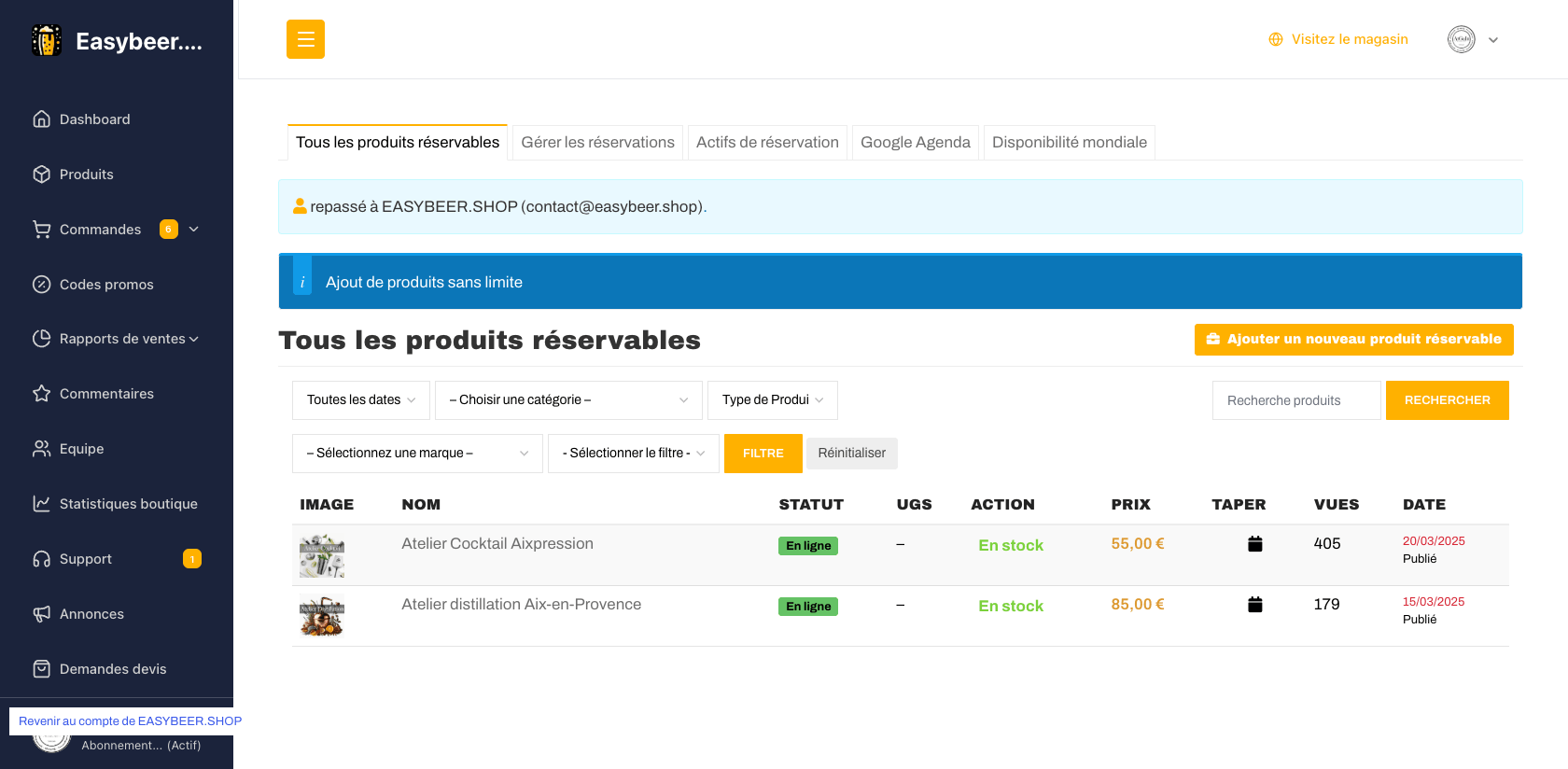 Easybeer.shop n’est pas qu’une boutique pour vendre vos bières. C’est aussi un système de réservation d’événements intégré.