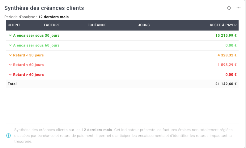 👉 C’est une vision à date, complémentaire du suivi chronologique des paiements.
